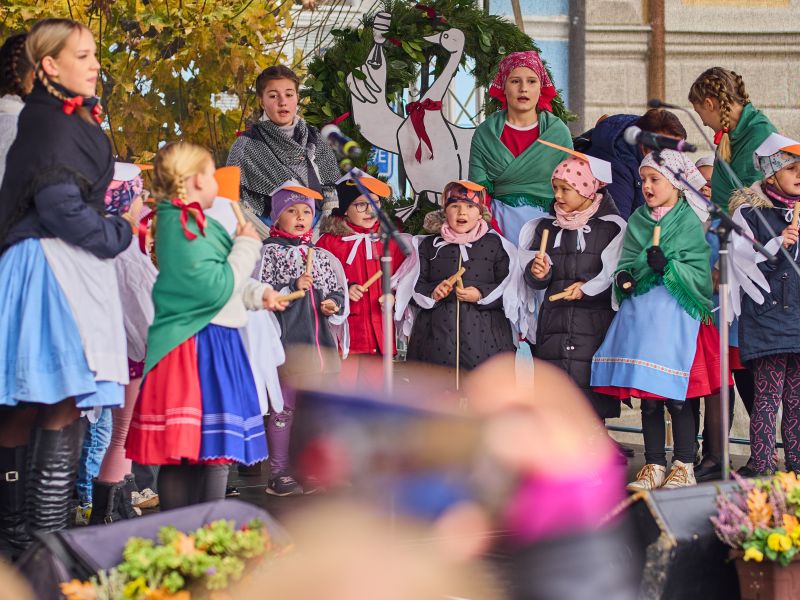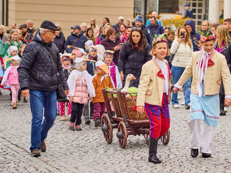 Tvořivé workshopy, dílničky pro děti, svěcení vín v Gajdošově sále mikulovského zámku, výstava vín, hudební vystoupení, cimbálové muziky, husí pochod s NS.