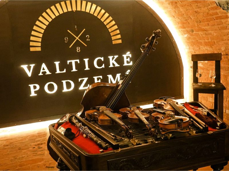 Vína potečou proudem, konzumace vybraných pokrmů a specialit Valtického Podzemí. Ochutnávka archivních vín, sabráže sektů. Vše okořeněno cimbálovou muzikou.